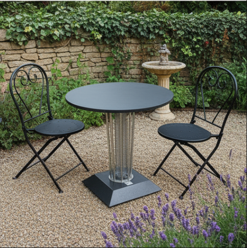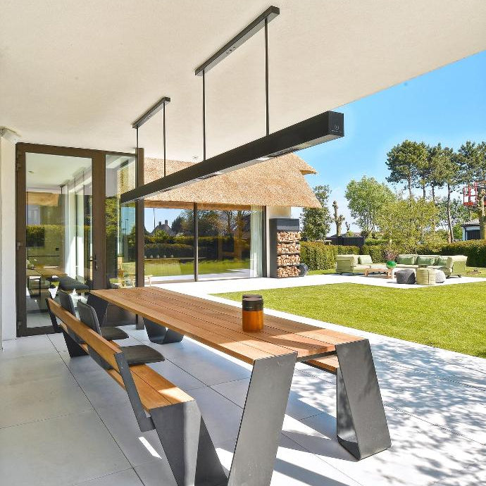 Varme integrert i bordets design – diskret, effektiv og stemningsskapende.